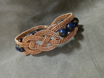 This elegant bracelet has the illusion that the braided wires are crossing over each other. You can order in Silver, copper, oxidized copper or gold.